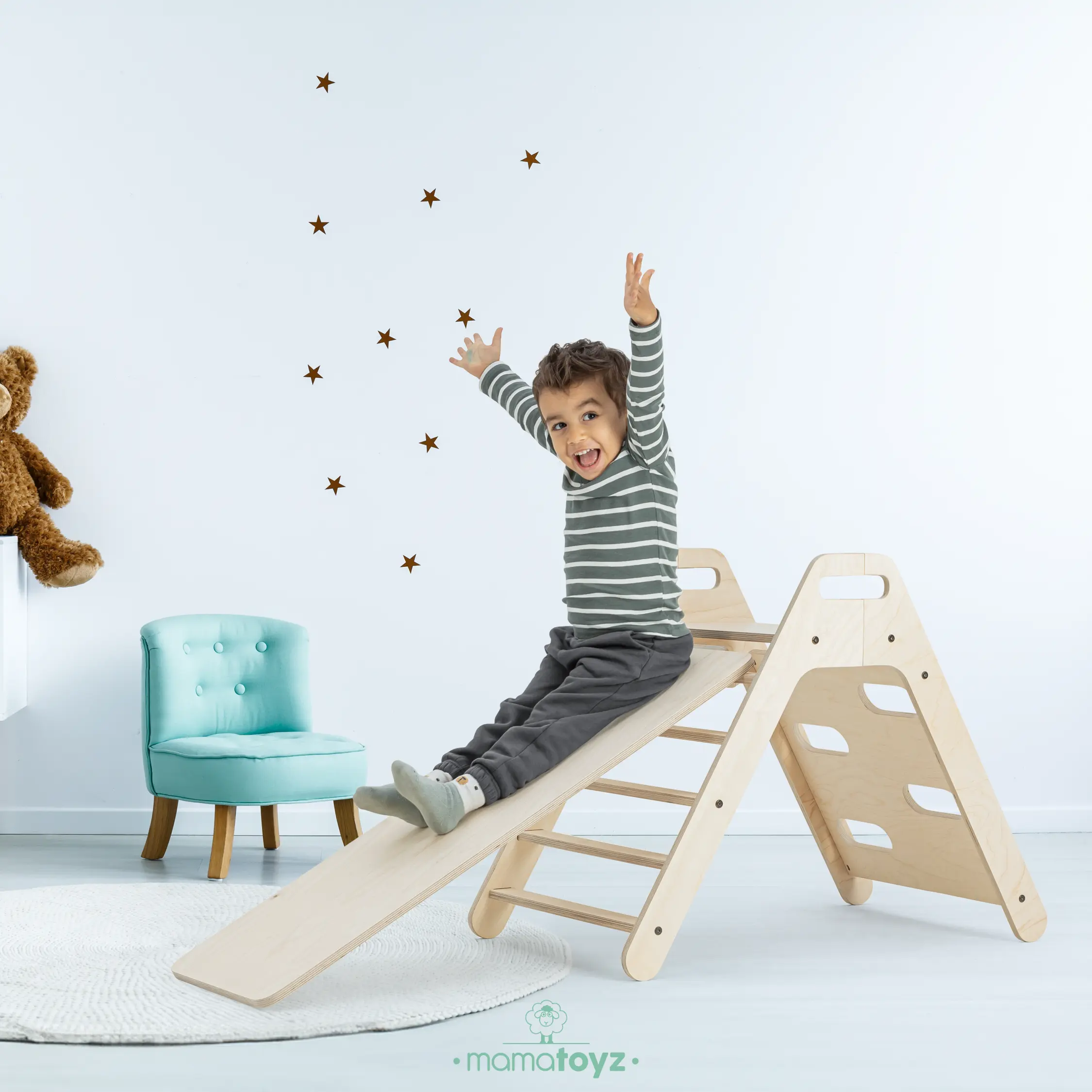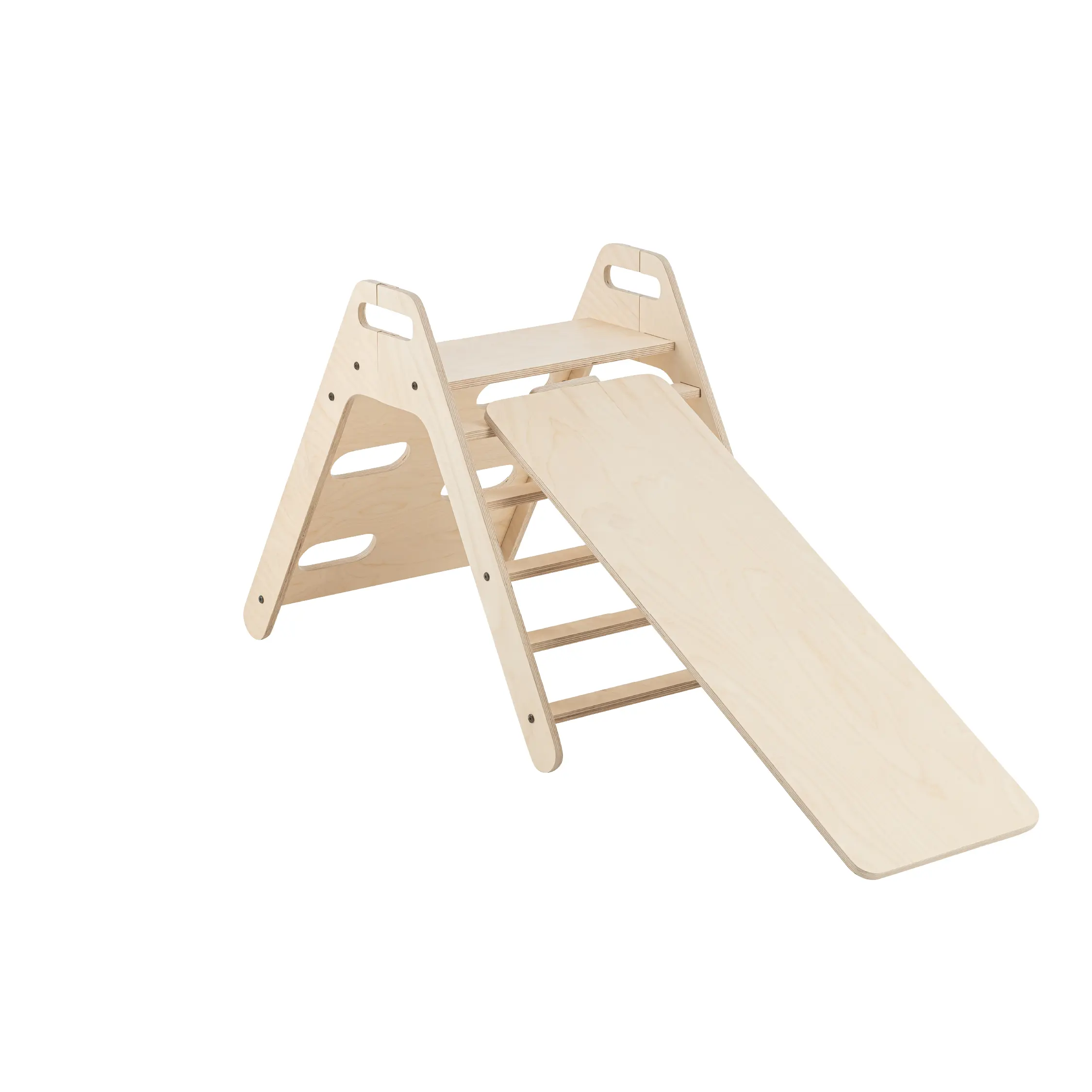 Piky Pikler Üçgeni ve Kaydırak ile çocuklarınız güvenle oynasın! %100 doğal ahşap, su bazlı boyalı, kolay kurulumlu ve motor becerilerini geliştiren bu seti hemen keşfedin!