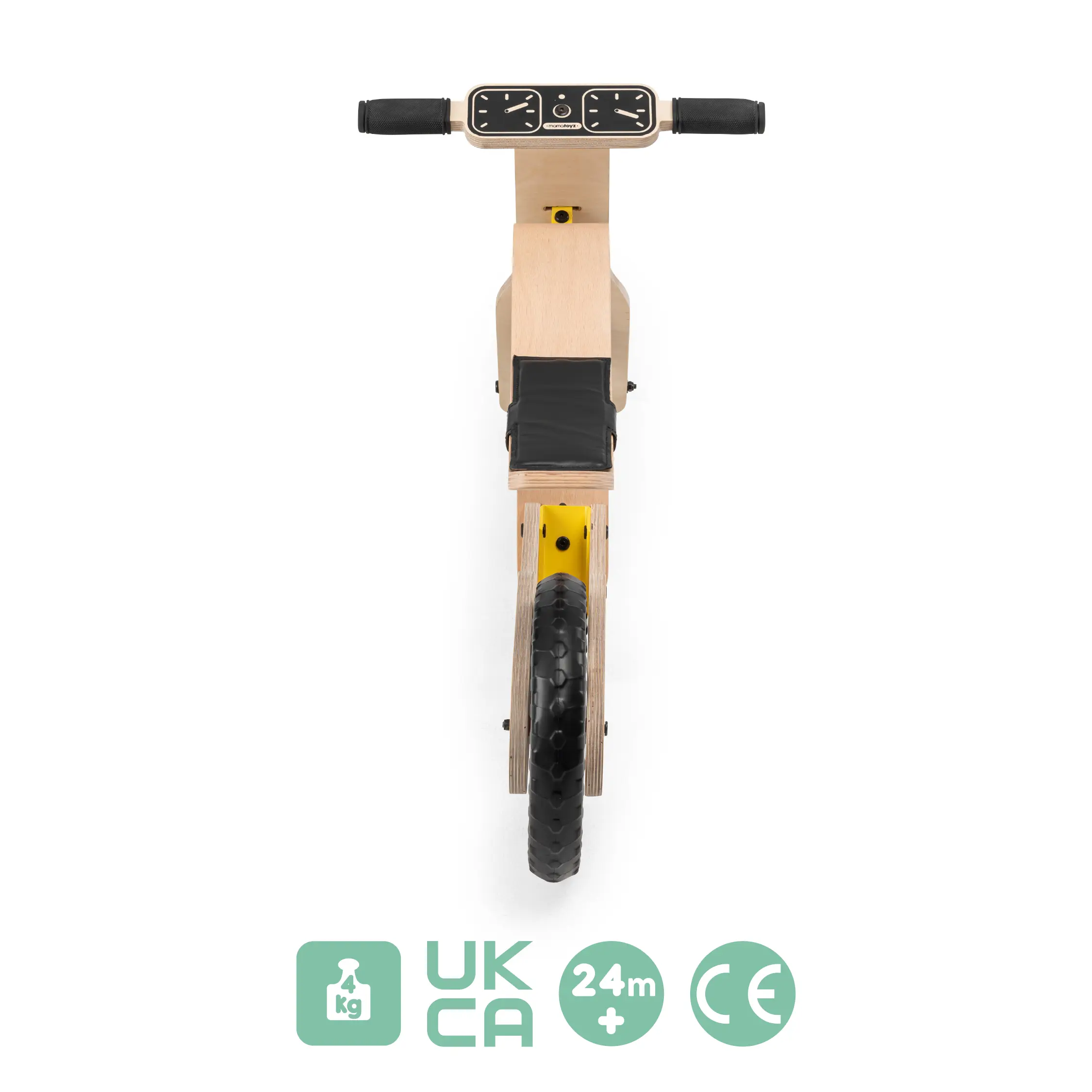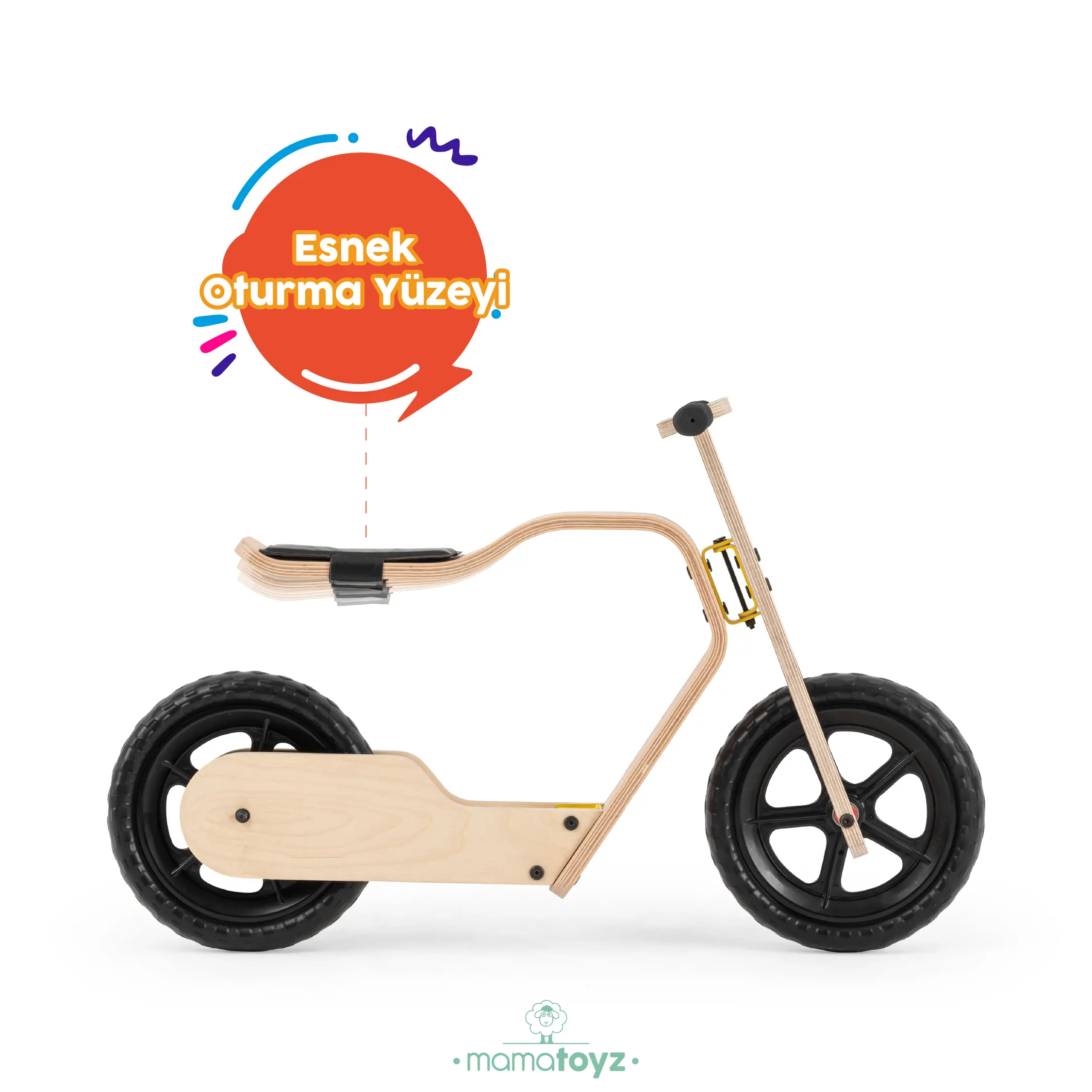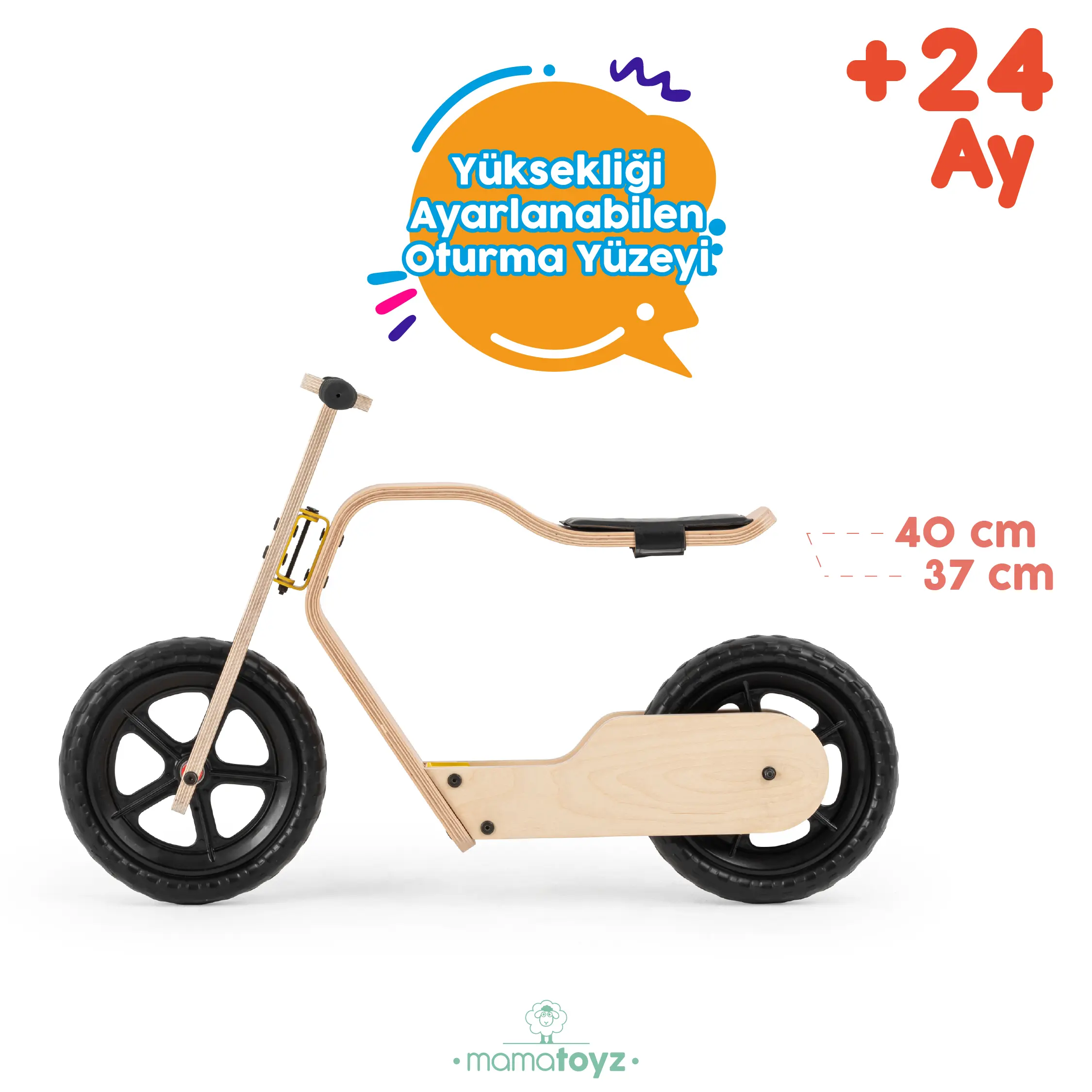 Bu bisiklet tamamen ahşap malzemeden üretilmiştir. Ahşap, sağlığa zararlı kimyasallar içermeyen doğal bir malzeme olmasıyla dikkat çeker. Bu özellik, RideMe’nin çocukların sağlığına zarar vermeden güvenli bir şekilde kullanılmasını sağlar. Ayrıca, ahşap yapı, bisikletin sağlamlığını artırarak uzun ömürlü bir kullanım sunar. Lastikler ise patlamayan ve şişirmeye ihtiyaç duymayan özel bir malzemeden üretilmiştir; bu da büyük bir kullanım kolaylığı sağlar. Çocuklar, bu dayanıklı bisikletle güvenle oynarken, ebeveynler de içleri rahat bir şekilde çocuklarını izleyebilir. RideMe, iki farklı yükseklik ayarı sayesinde çocuğunuzun büyüme sürecine uyum sağlar ve uzun süreli bir kullanım imkanı sunar.