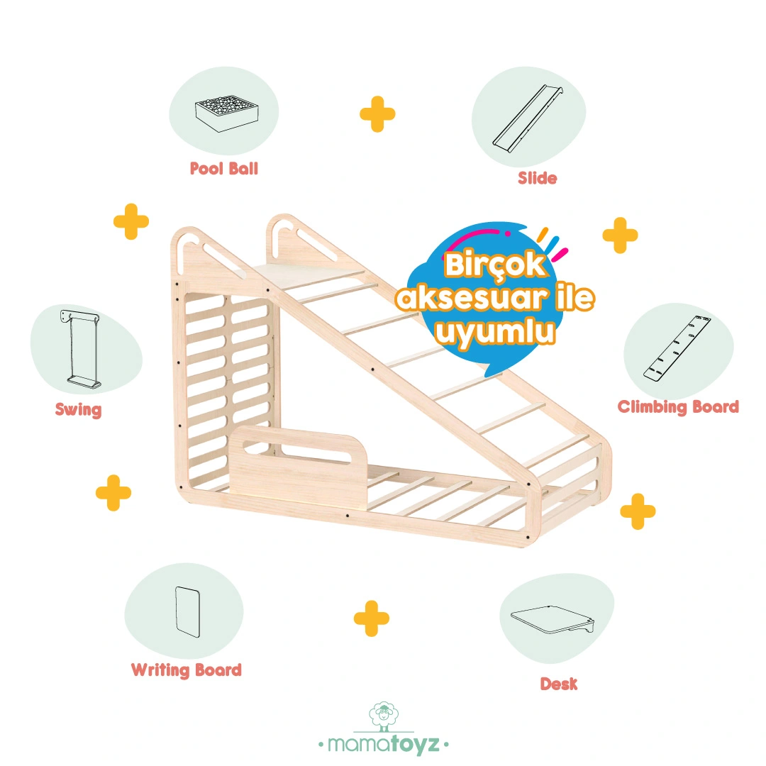 Sleepy Montessori Karyola Yatak All in One Hepsi bir Arada | Salıncak | Masa | Yazı Tahtası | Kaydırak | Tırmanma Tahtası