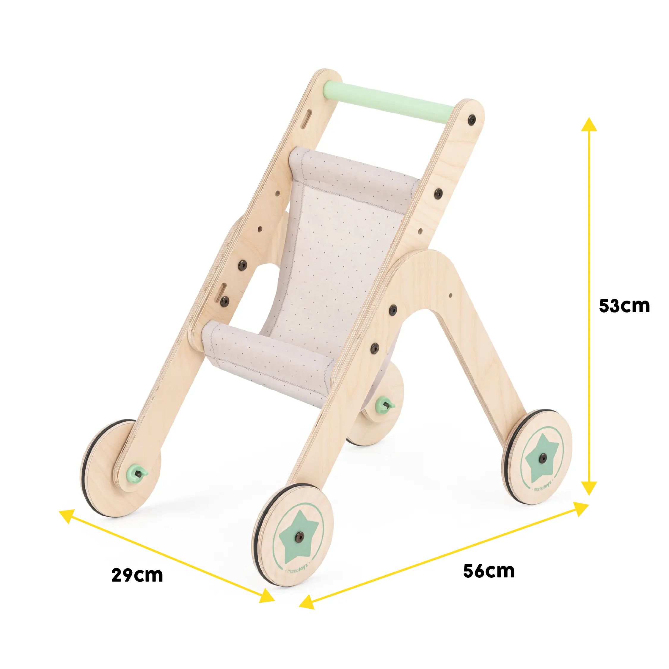 Trio Stroller İlk Adım Yürüteç ve Oyuncak Bebek Arabası, hem ilk adım yürüteç hem de oyuncak bebek arabası olarak iki işlevi bir araya getirir. %100 doğal ahşaptan üretilen bu ürün, çocuklarınızın güvenle kullanabileceği, eğitici ve eğlenceli bir oyuncaktır.